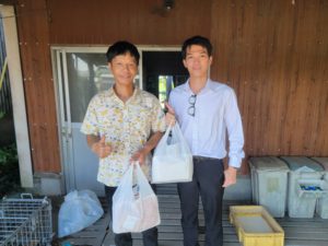Job④豚舎内の消毒は基本的に毎日実施しています。分娩舎では母豚に餌をやった後で糞かきをします。その後で消毒を行います。消毒は通路を洗い流すようにやるのと、空間消毒は子豚にはあまりかからないように、さっと空間のホコリを落とすような感じで消毒をします。消毒をすることで豚が病気になる病原菌を殺菌するのと、冬場は豚舎内も乾燥するので消毒をするこ加湿にもなります。 【動画はこちら】 Job⑤子豚は約1.4kgほどで産まれてきて約3週間で約7kg前後まで成長します。母豚から離すことを離乳といいます。離乳するまでは母豚の乳で育ちますが離乳した後の子豚は自分で餌を食べてどんどん大きくなります。次に分娩する母豚のために部屋を空けてけて準備します。子豚はトラックに載せて離乳舎へと移動します。 【動画はこちら】